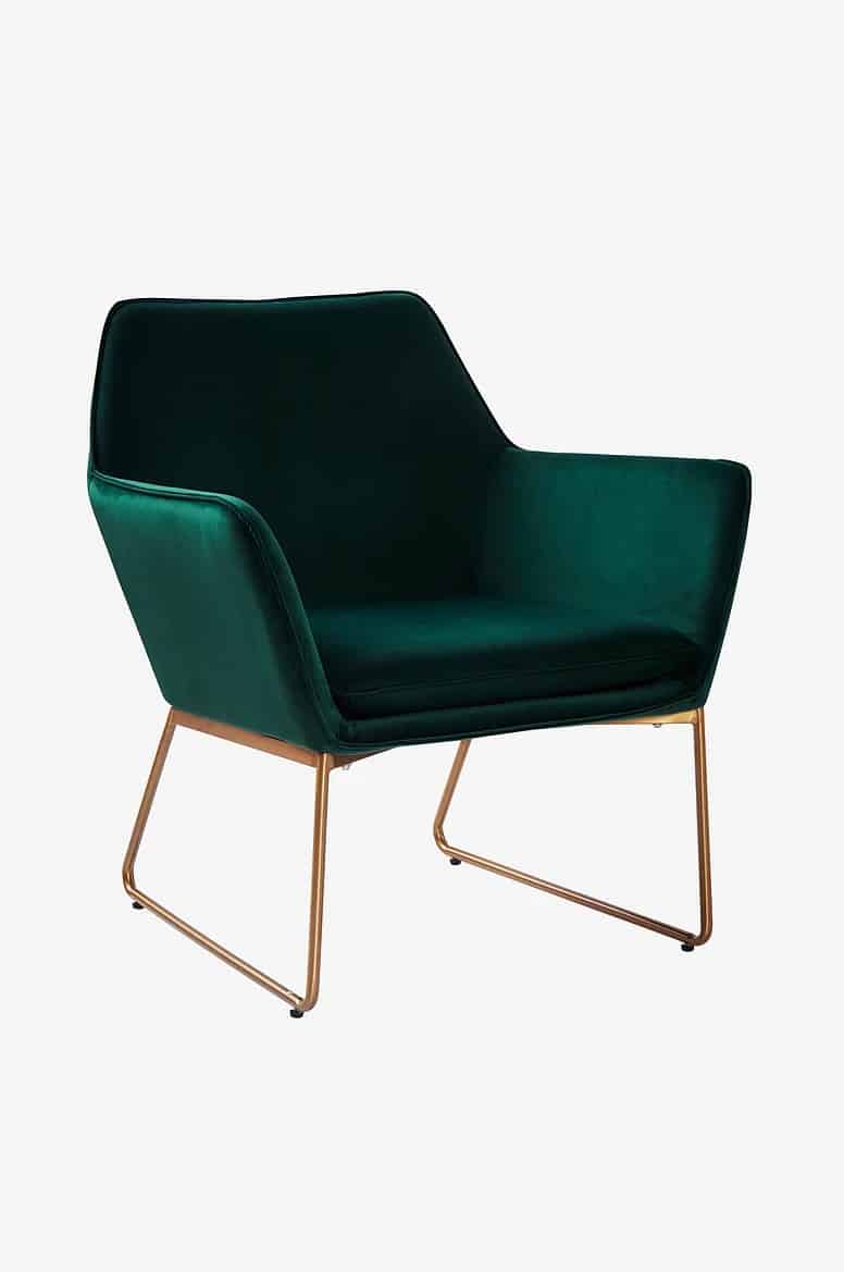 vihreä kangas, kullanväriset jalat, koko 66 x 60 x 78 cm